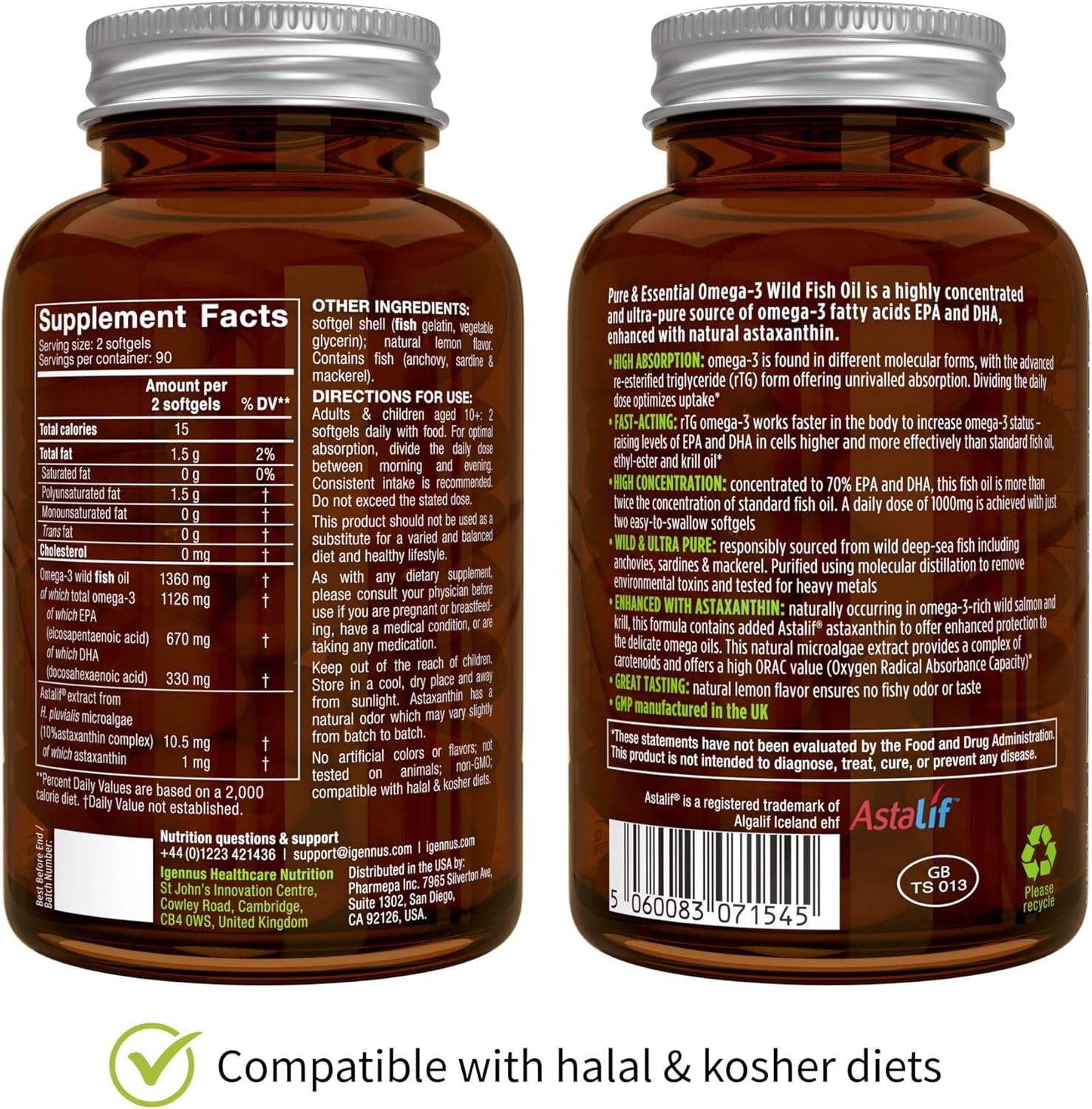 BRAIN, HEART, EYES, SKIN & JOINTS: taking Omega 3 1000mg EPA and DHA fish oil & astaxanthin daily provides effective support for brain function, heart, eye and skin health and inflammatory support*