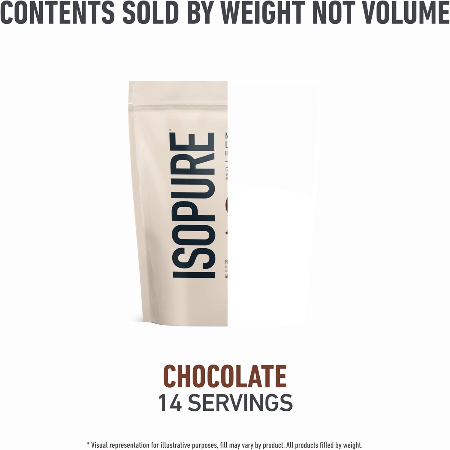 One 1 lb bag (14 servings) of Isopure 100% pure whey isolate protein powder in delicious Dark Chocolate flavor
