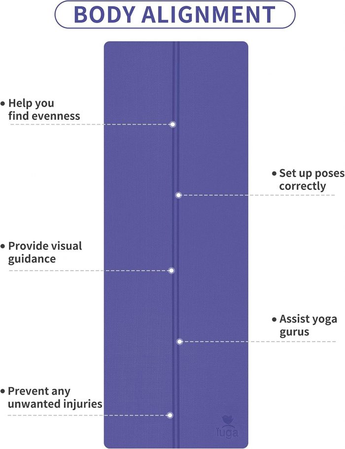 Alignment Lines: Perfect for home or studio use. The alignment lines help to maintain the correct body posture in several yoga poses. It’s particularly helpful when practicing alone without instructors.