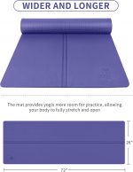 Customers find the yoga mat to be of good quality, comfortable with cushioning that prevents elbow soreness, and appreciate its durability and thickness, noting it’s 3 inches wider than standard mats. They like its color, particularly the center stripe, and consider it good value for money. The slipperiness receives mixed feedback – while some customers report good grip, others mention it becomes slippery over time.