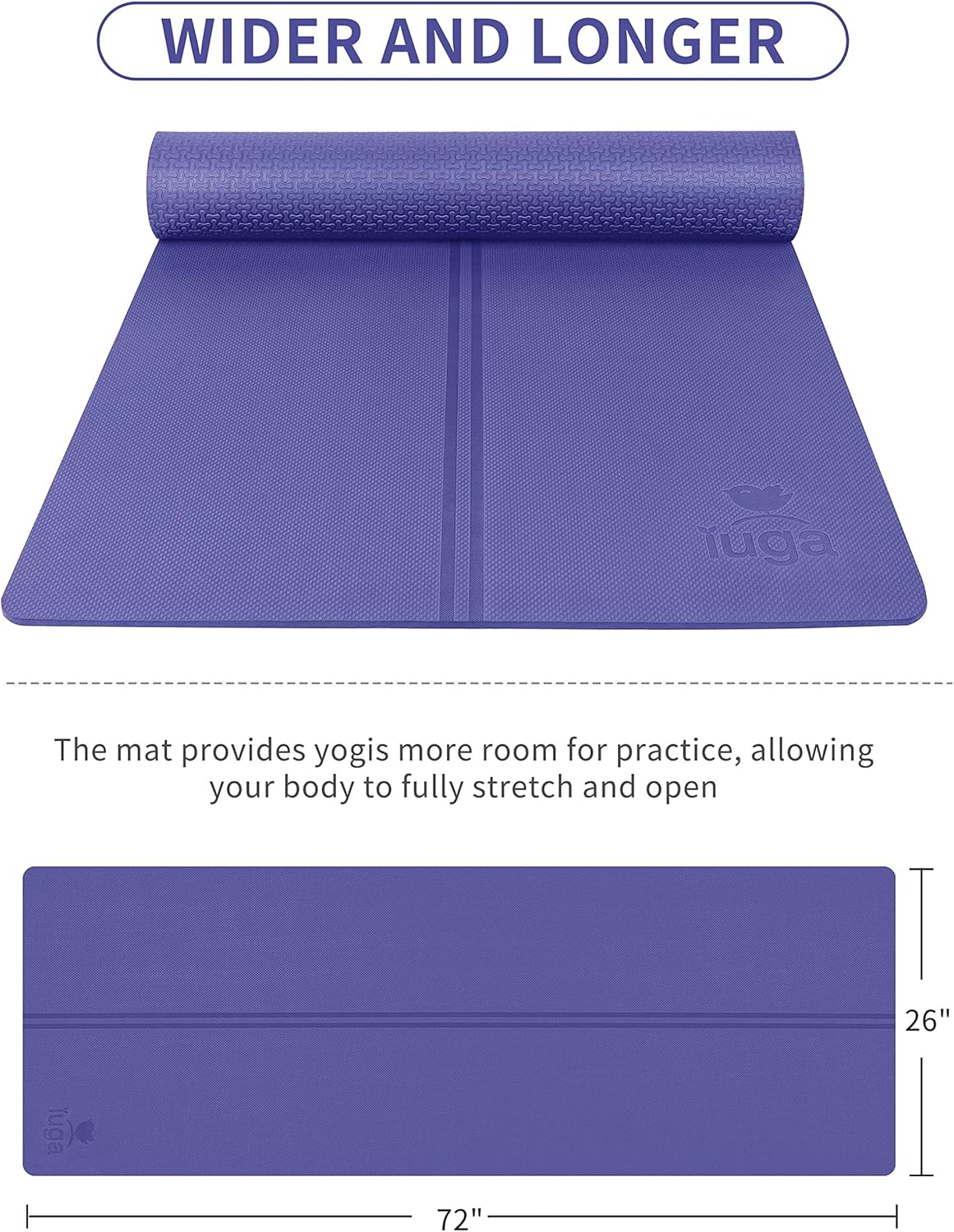 Extra Large Size: 72” long X 26” wide and 6mm thickness. The perfect balance of weight and cushion. Most mats are either too thin or too thick. IUGA mats are guaranteed to provide the optimal level of cushion and protection for your joints and knees while still allowing you to grip the floor for balance poses. Quality and adjustable carry strap is included, we love to add extra value to all IUGA customers.