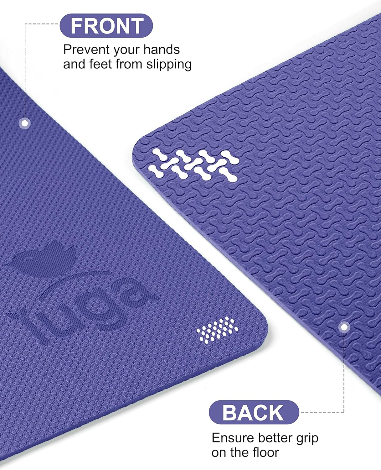 Eco Friendly Material: Our yoga mat comprises of quite recently developed and patented TPE (thermoplastic elastomer) foam, a material that is advantageous to traditional PVC and NBR in all aspects. It’s eco friendly, non slip and perfectly to use in all types of yoga.