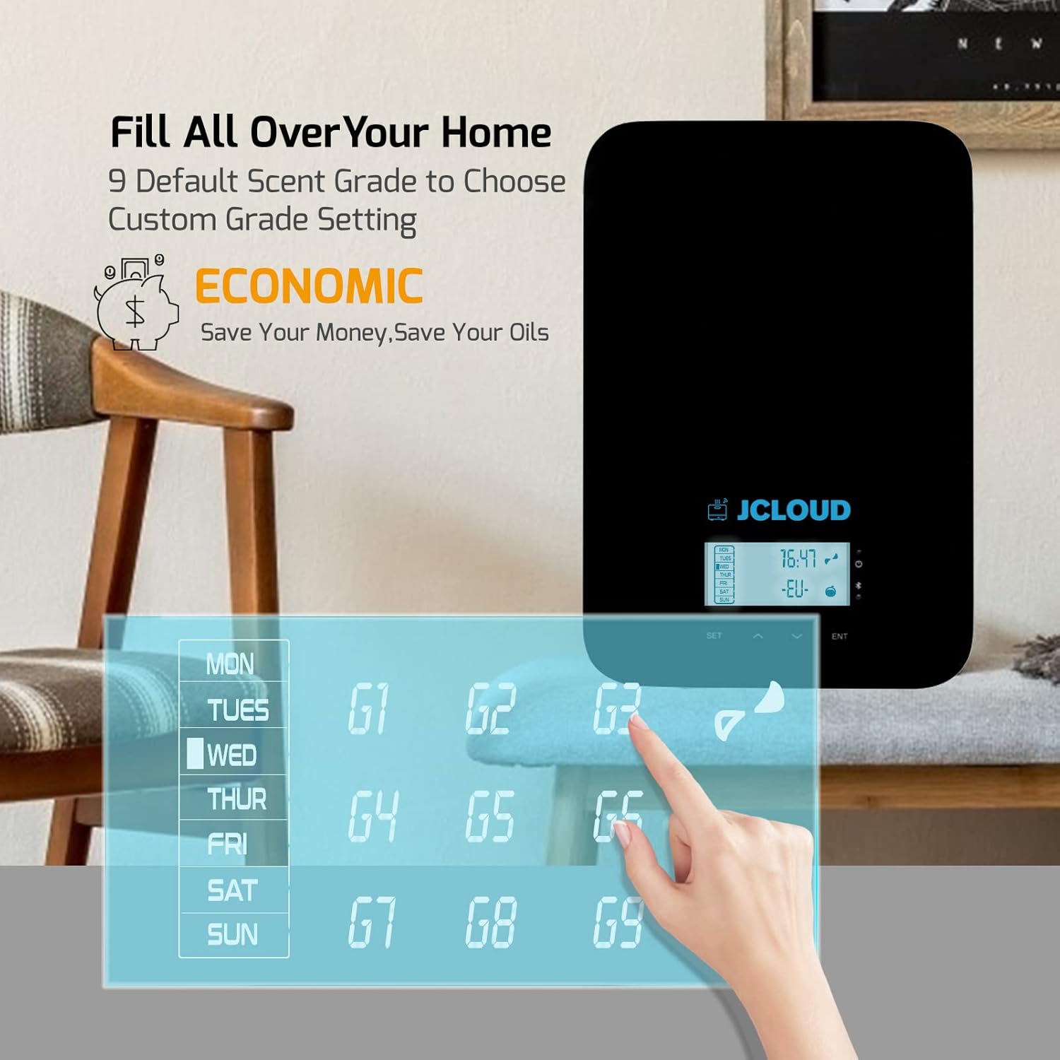 【Scent All Over Your Home】The JCLOUD scent air machine is designed to effectively scent large areas of 2000 sq. ft. Whether you need to scent your home or office, the HVAC scent diffuser can cover large areas quickly and efficiently, making it a great oil diffuser for large room. The powerful motor of the essential oil diffuser allows it to distribute the fragrance oil quickly, providing a consistent and long-lasting scent experience.You have 9 scent grade to choose, or customized by yourself.
