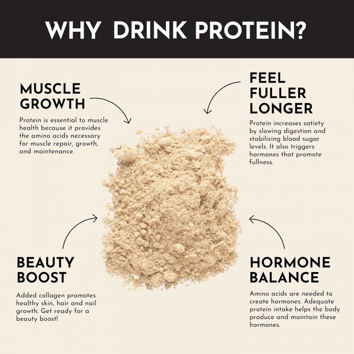 4 Sources of Protein – This blend of Whey, Organic Pea, Collagen, & Chia Seed Proteins, offers multifaceted benefits. It boosts iron levels, strengthens bones, joints, tendons, & improves gut health.