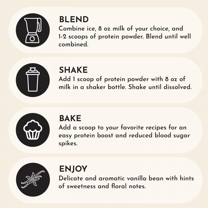 All-Natural Ingredients – Protein powder free from sugar alcohols, artificial sweeteners, & gluten. Sweetened with Stevia Leaf for a balanced sweetness & enriched with Sea Salt & Coconut Milk Protein.