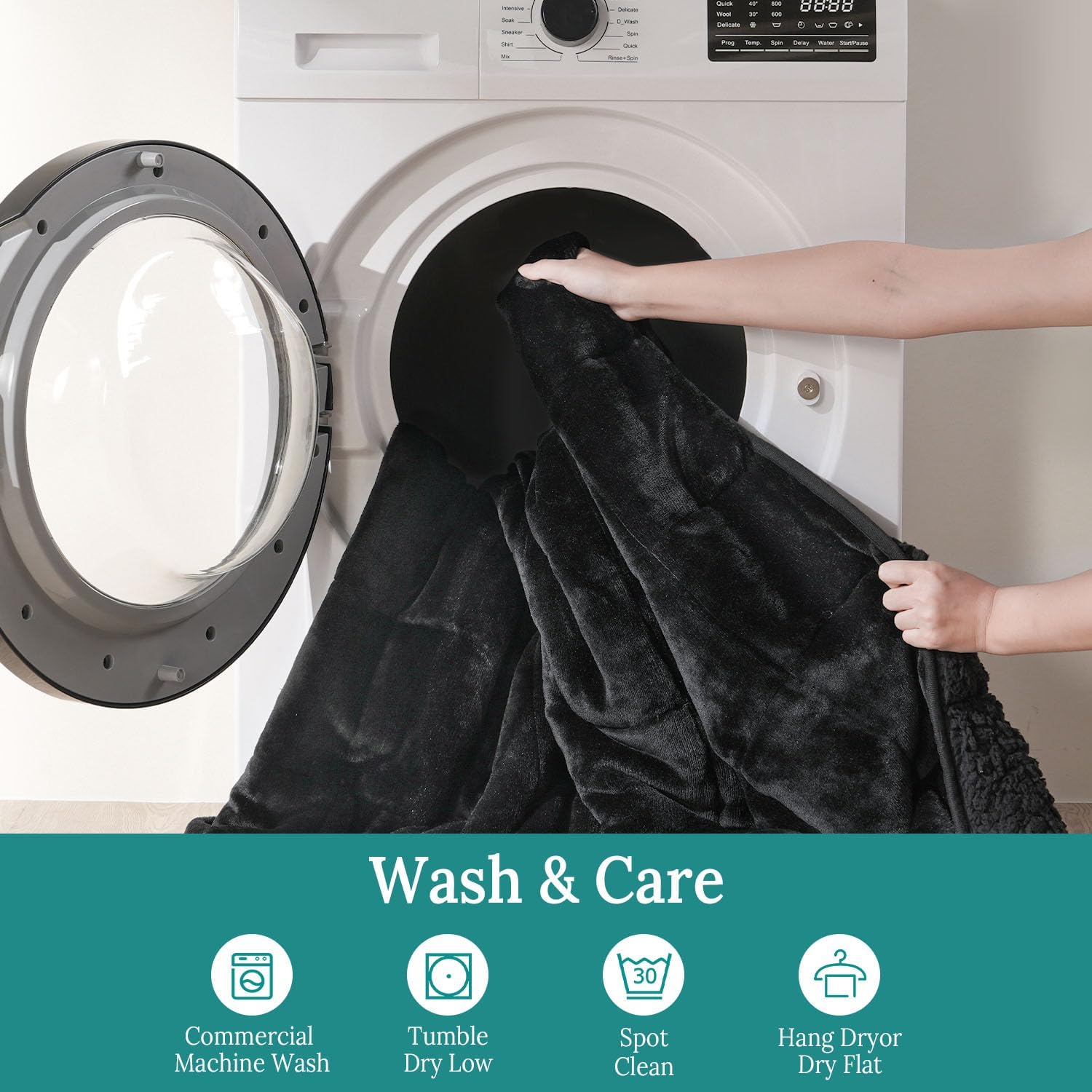 Breezy Care: Washing the blankets are easy. Our sherpa weighted blankets are machine washable, able to maintain its fuzzy texture after years of wash. We recommend spot clean for local stains. Commercial washer is recommended considering its weight