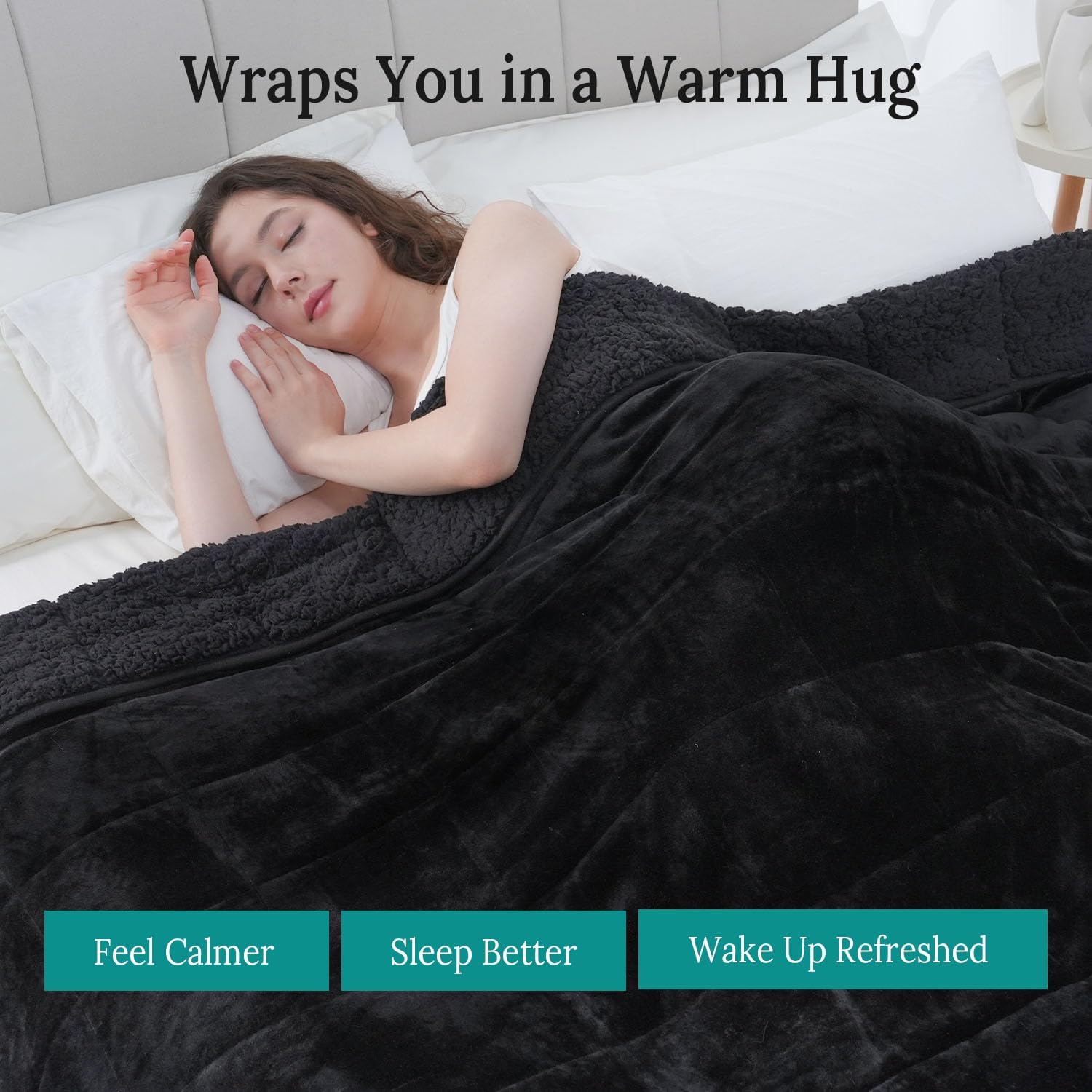Snuggle-cozy: The heavy blankets feature same-color flannel and Sherpa with velvety smooth touch of fleece and instant warm sensation of fuzzy Sherpa. Layered design loosens up every muscle and knot of your body to elevate your sleep. With the reassuring companion of these blankets, you’ll look forward to bedtime each night