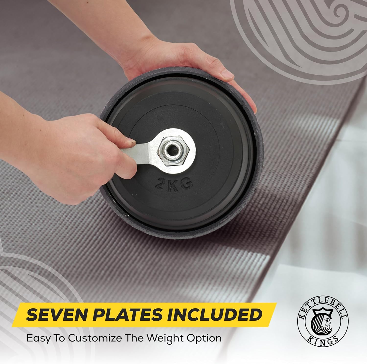 Experience the pinnacle of versatility and durability with the Kettlebell Kings Adjustable Kettlebell Set. Designed for home gyms, this competition-style kettlebell offers seven adjustable plates, allowing you to tailor your workouts with ease. The secure lock-in center screw and included allen wrench make weight adjustments a breeze. With a 35mm regulation handle providing a firm grip, this kettlebell set is built to withstand rigorous workouts. From beginners to seasoned fitness enthusiasts, this adjustable kettlebell set is perfect for adults looking to enhance their strength and stamina. Take your fitness journey to new heights and achieve your goals with the Kettlebell Kings Adjustable Kettlebell Set.