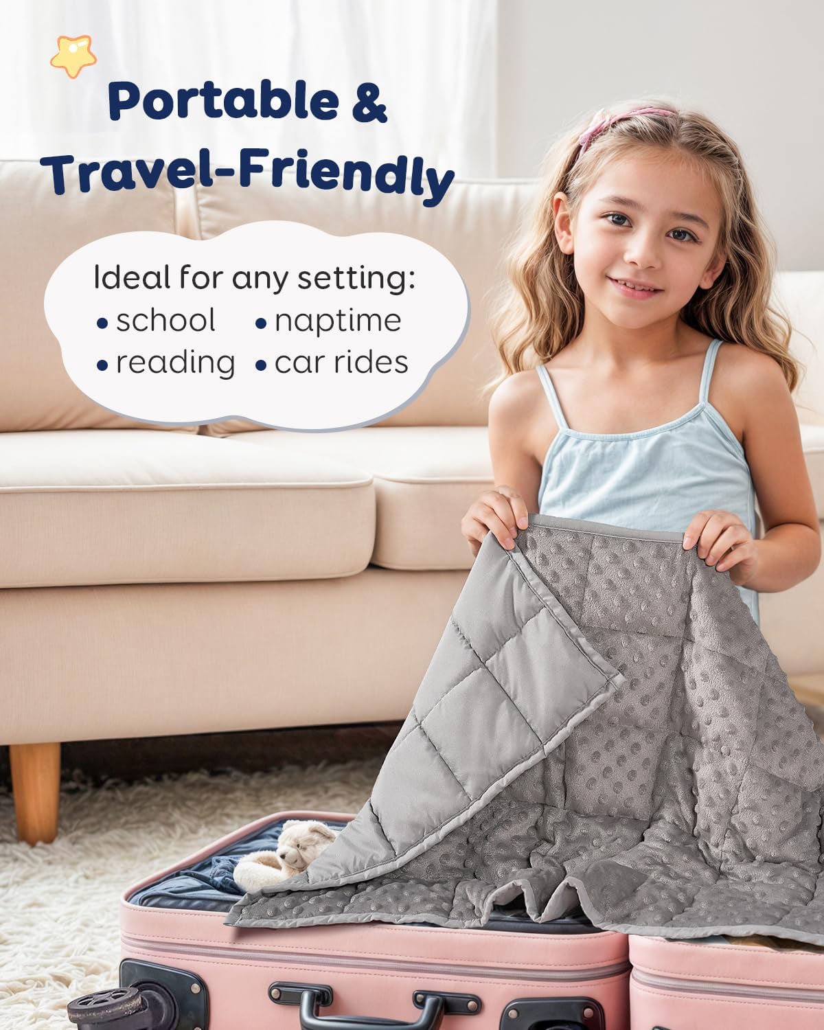 Versatile and Portable: 3lb weighted blanket is easy to carry and ideal for both home and school. It is great for enhancing focus during study time, acting as a comfort buddy while watching TV, and providing calm before naps
