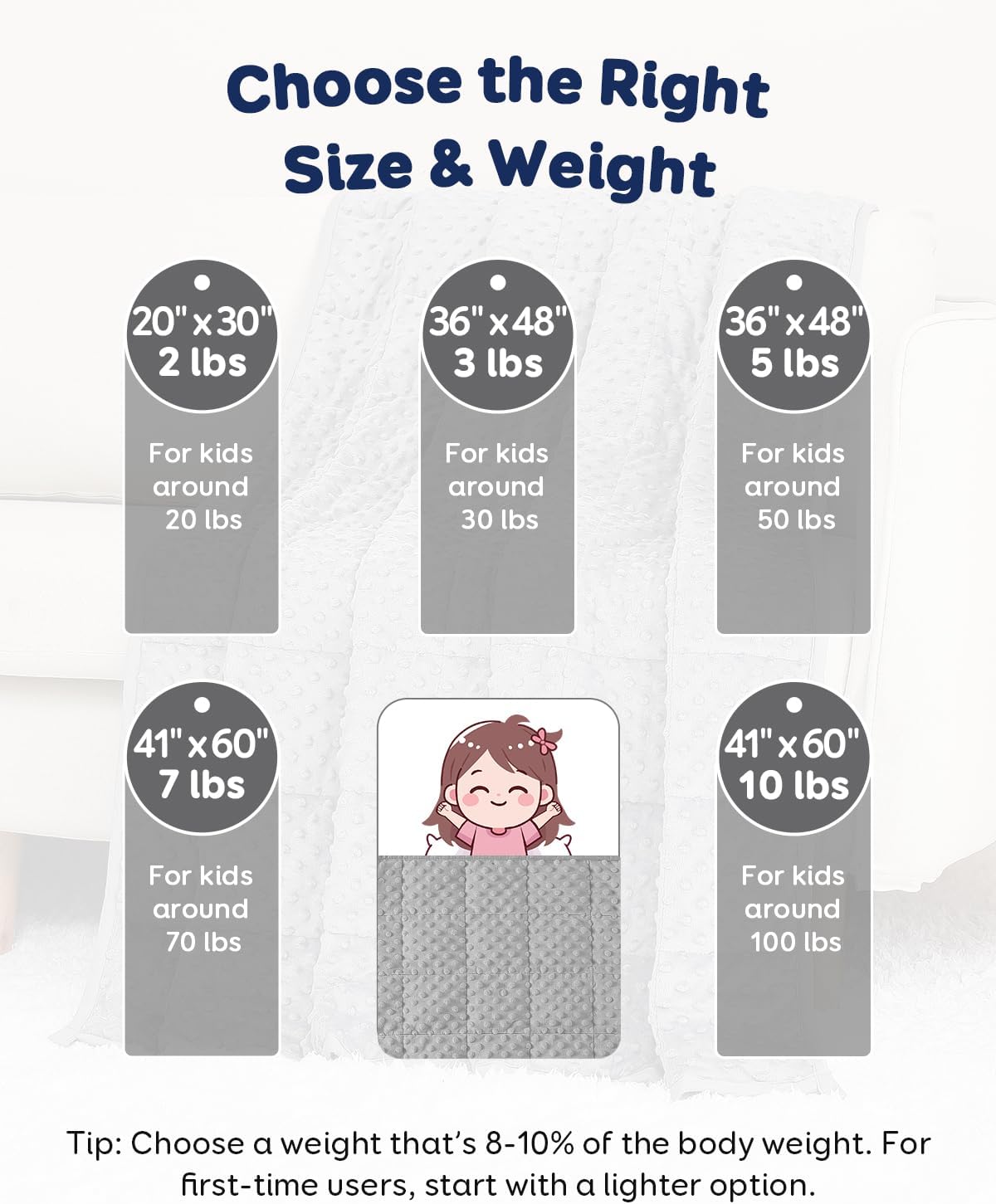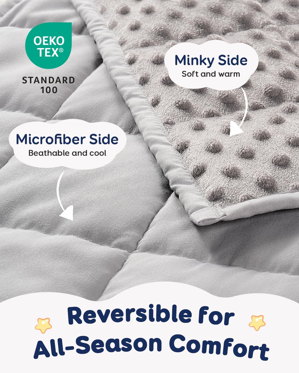 Dual-Sided Comfort: Weighted small blanket features a dual-sided design—cozy, dotted minky fabric for a soothing touch, and breathable microfiber for all-season comfort