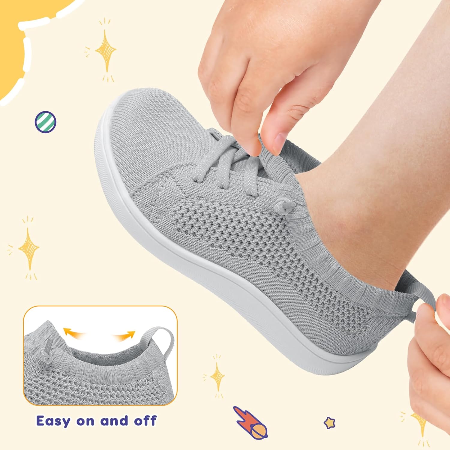 Customers find these toddler shoes comfortable and easy to slip on, with a spacious toe box that accommodates wide feet. Customers describe them as cute, durable, and worth the price, with one customer noting they maintain their shape after several months of wear. The slip resistance receives mixed feedback – while some customers say they don’t slip, others report they keep sliding off.