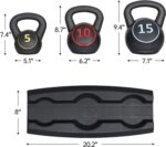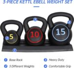 Set of Kettlebells-Set includes kettlebells at 5,10,15 or and 20 pounds.Each kettlebell has an eye-catching color for weight,which can help you target all major muscle groups in a variety of exercise methods and bring you more exercise options