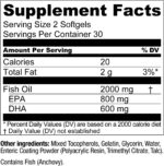 Our Best Premium Quality Omega-3 Fish Oil Supplement: Our powerful 2000 mg fish oil softgels deliver a pure, potent dose of Omega-3 essential fatty acids. Each serving contains 800 mg EPA and 600 mg DHA with 60 burpless softgels in each bottle.