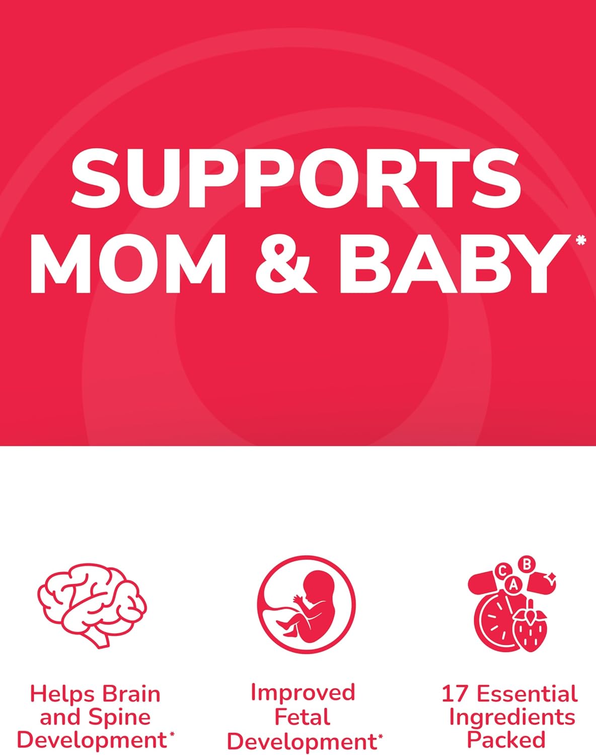 Designed for Moms and Moms-to-Be – These prenatal multivitamins for women are carefully crafted to support a balanced diet during the prenatal stage, with a great berry flavor for easy daily consumption.
