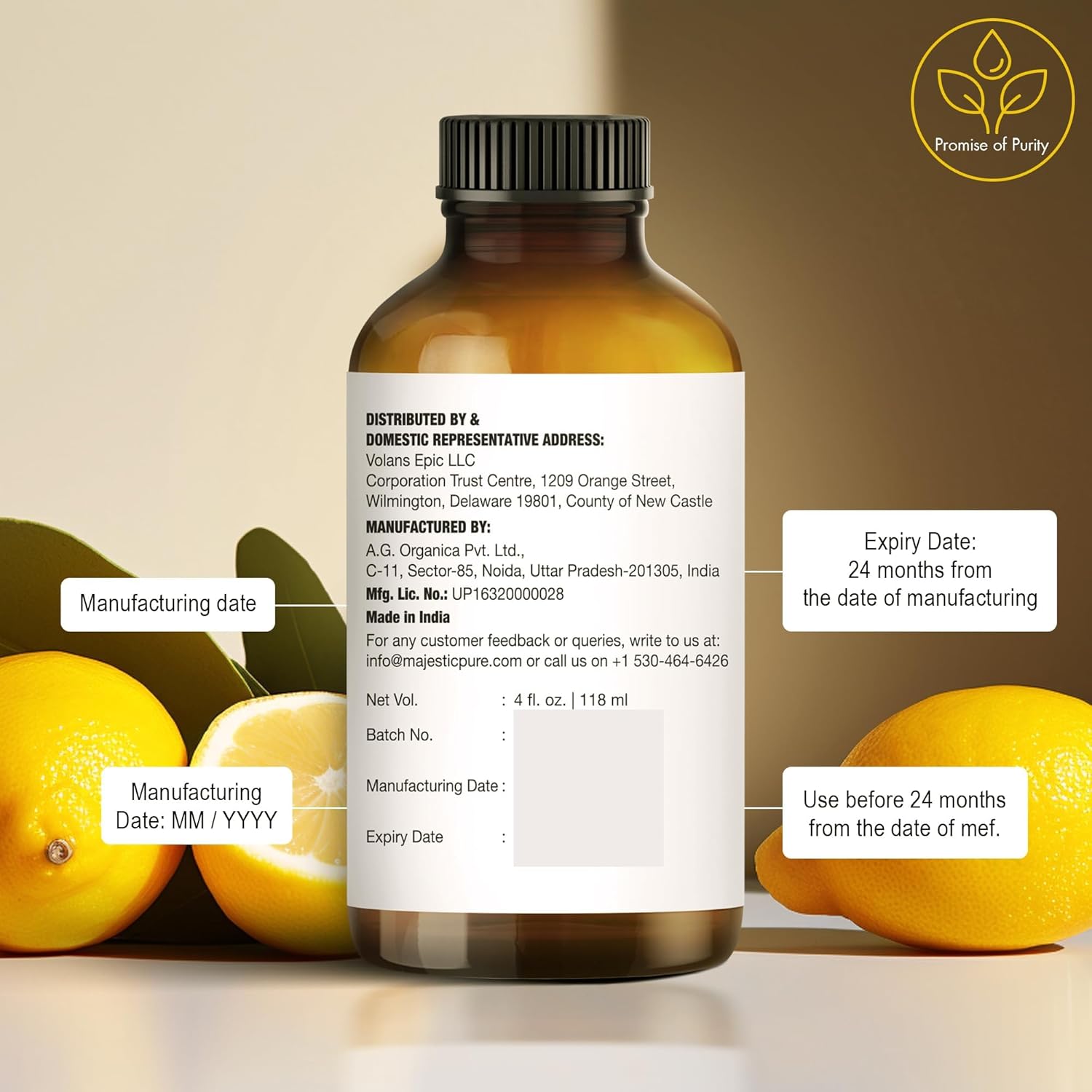 100% PURE & NATURAL LEMON OIL – Majestic Pure Blends oils are exactly that! Many oils being sold make that claim but are in fact made of natural isolates and mixtures. Each essential oil is tested by an independent lab which is why every bottle comes with a Quality Guaranty.