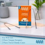 TRAVEL FRIENDLY: The 2-piece kit has individual cases for each tongue cleaner (limpiador de lengua), making it easy to carry around. You can just keep one at home and another at work. It is a comfortable size for adults. The high-quality stainless steel tongue scraper can be cleaned without any hassle and won’t break, unlike other alternatives.
