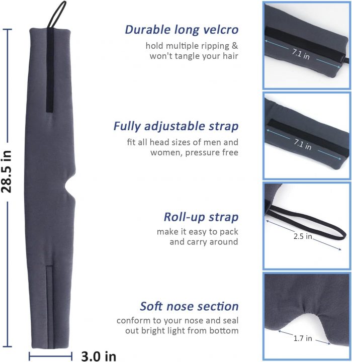 Portable Roll-up Strap & Easy Storage: For anyone searching for a nice sleep companion for work and travel, Mavogel full coverage sleep eye mask is an irresistible choice. It is lightweight, stylish and has a roll-up strap which you can use it to roll up the mask into small space and make it portable to carry around. And you can hung it on hook by this strap so that you won’t lose it