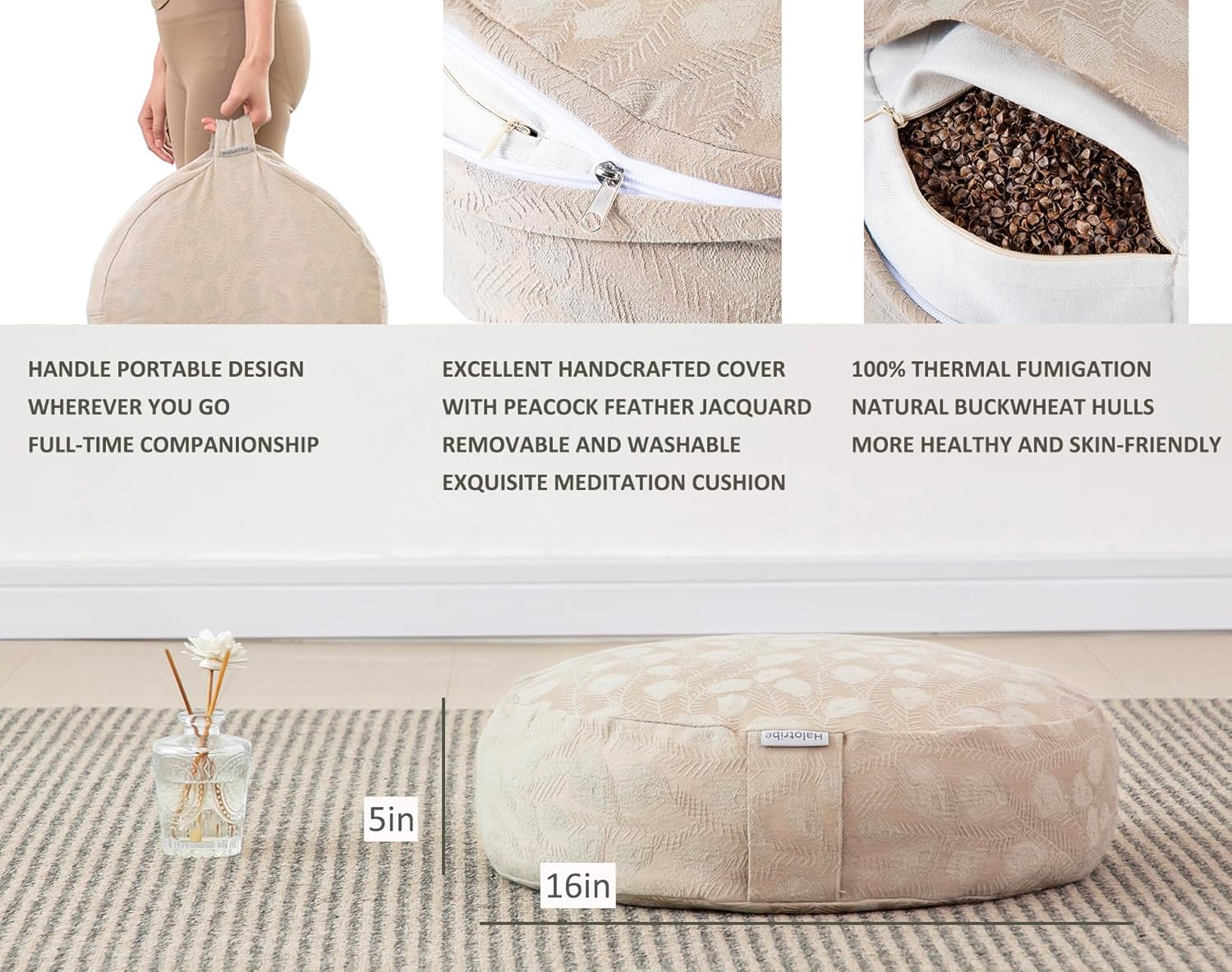 MULTI-PURPOSE FLOOR CUSHIONS: The floor cushion has a carrying handle design: it is portable for daily use or traveling outdoor meditation;The exquisite style is also a very good choice for home decor,family gifts,holiday gifts