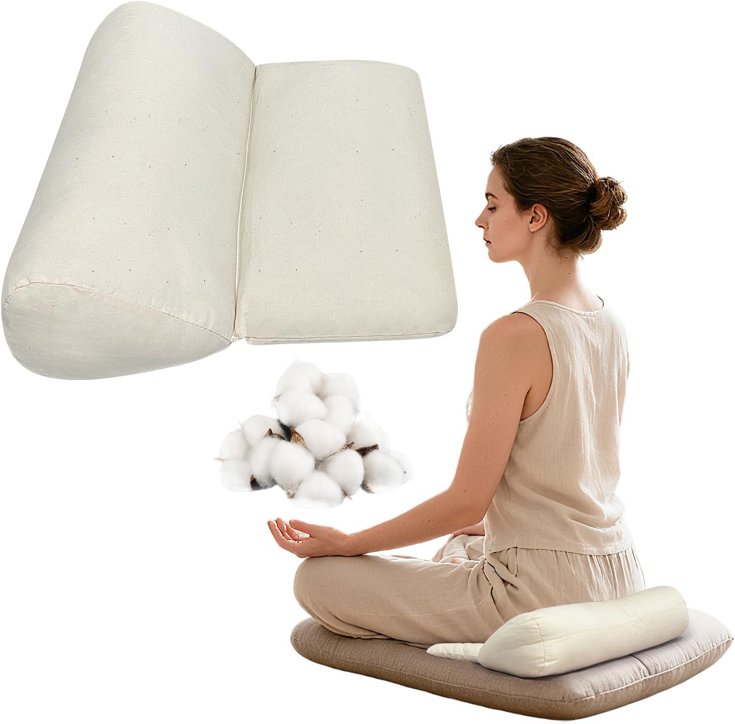 Filled with high-resilience organic cotton, the cushion cradles your tailbone to provide gentle lift and stability. This promotes spinal alignment, reduces lower back tension, and helps prevent leaning backward during seated meditation.