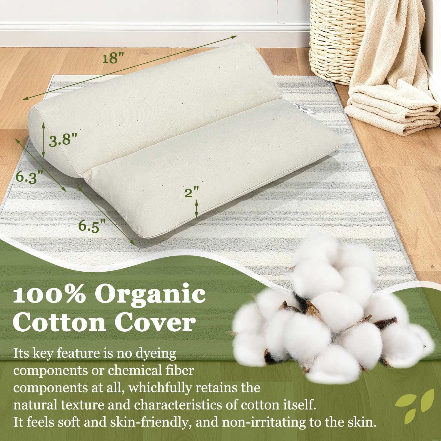 Cover: 100% organic cotton (undyed) – Made from undyed, chemical-free organic cotton, the fabric is soft, breathable, and gentle on the skin. It retains the natural texture of cotton, offering a hypoallergenic and eco-friendly experience.