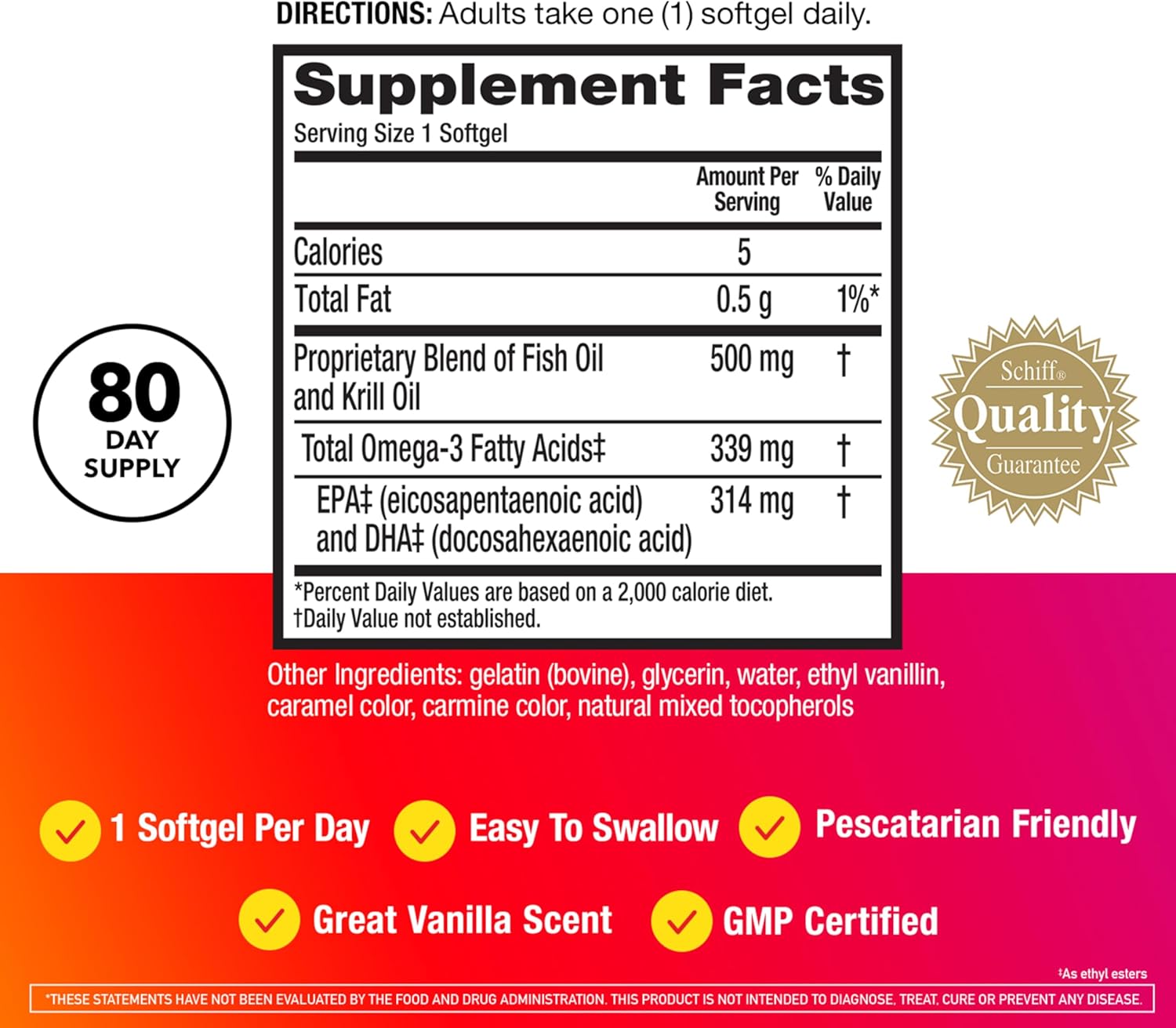 SCHIFF QUALITY GUARANTEE: Guaranteed for purity, freshness and labeled potency