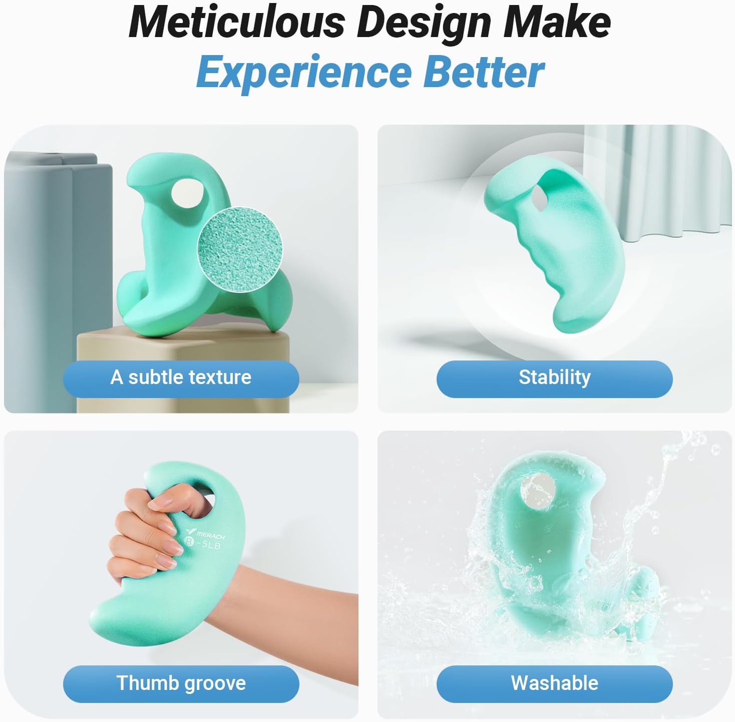 [ Specifications ] MERACH 5 lb dumbbells set of 2. Available in various sizes: 3 lbs hand weights sets for women – Purple, 4 lbs hand weights sets for women – Green, 5 lbs hand weights sets for women – Yellow