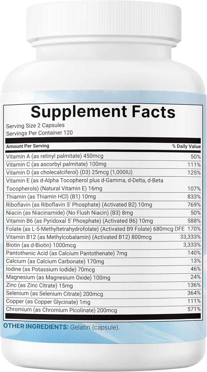 Enjoy only active ingredients that use high bioavailable methylated vitamins and minerals for efficiently refilling key nutritional gaps over time.