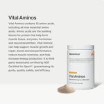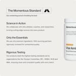Comprehensive Amino Acid Blend – Momentous Vital Aminos features a meticulously crafted combination of 13 amino acids, including all 9 essential amino acids (EAAs), & 4 additional ones. This blend is designed to support muscle growth, repair, & overall physiological function, making it a superior protein source for your body’s needs.