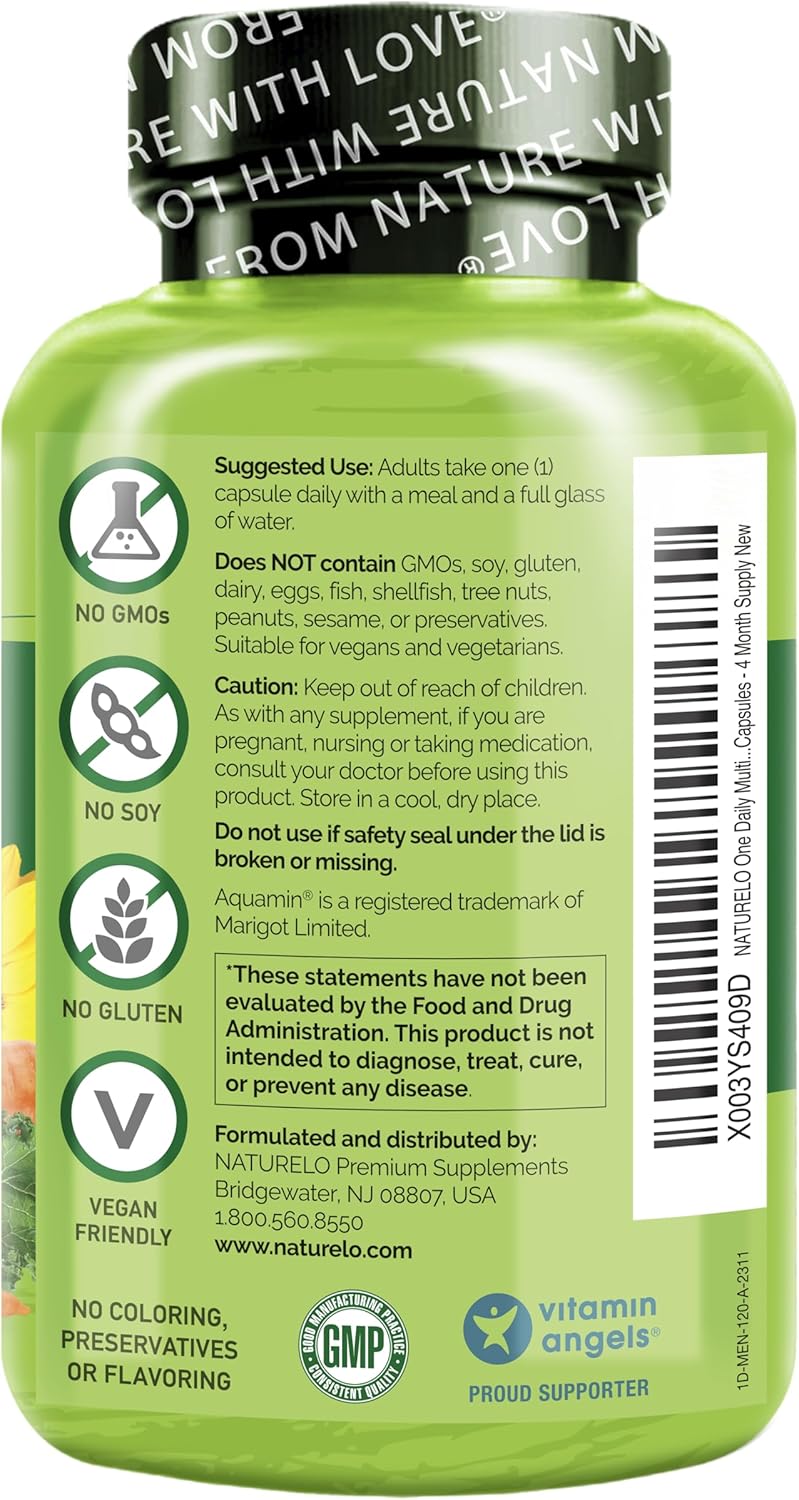 MENS MULTIVITAMINS: NATURELO multivitamin is manufactured according to stringent GMP guidelines. These mens multivitamins vegan, non-GMO, soy free, gluten free formulations ensure you are choosing a trusted men’s daily vitamin.