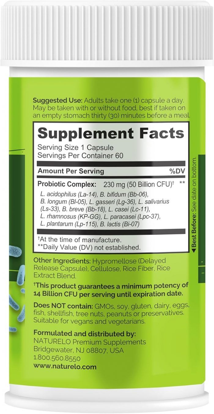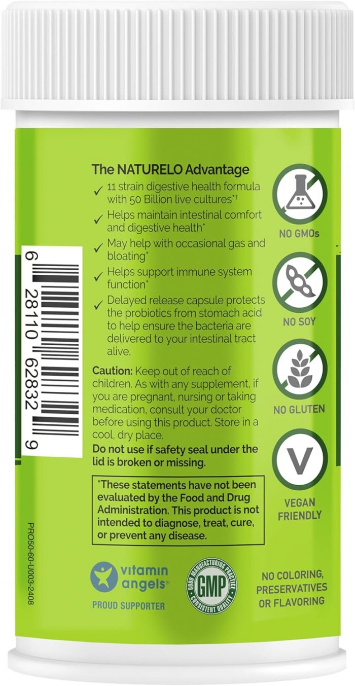 EFFECTIVE DELIVERY: NATURELO Probiotics are formulated in delayed-release capsules, a method that aids the survival of live probiotics and their effective delivery to the gut. This special delayed action protects lactobacillus and bifidobacterium from the acidic environment in the stomach.