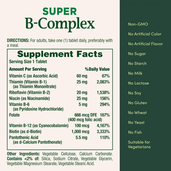 FROM THE TRUSTED WELLNESS EXPERTS: Nature’s Bounty Super B-Complex tablets are a product of nearly 50 years of dedication to quality consistency and scientific research to make vitamins and nutritional supplements of unrivaled excellence