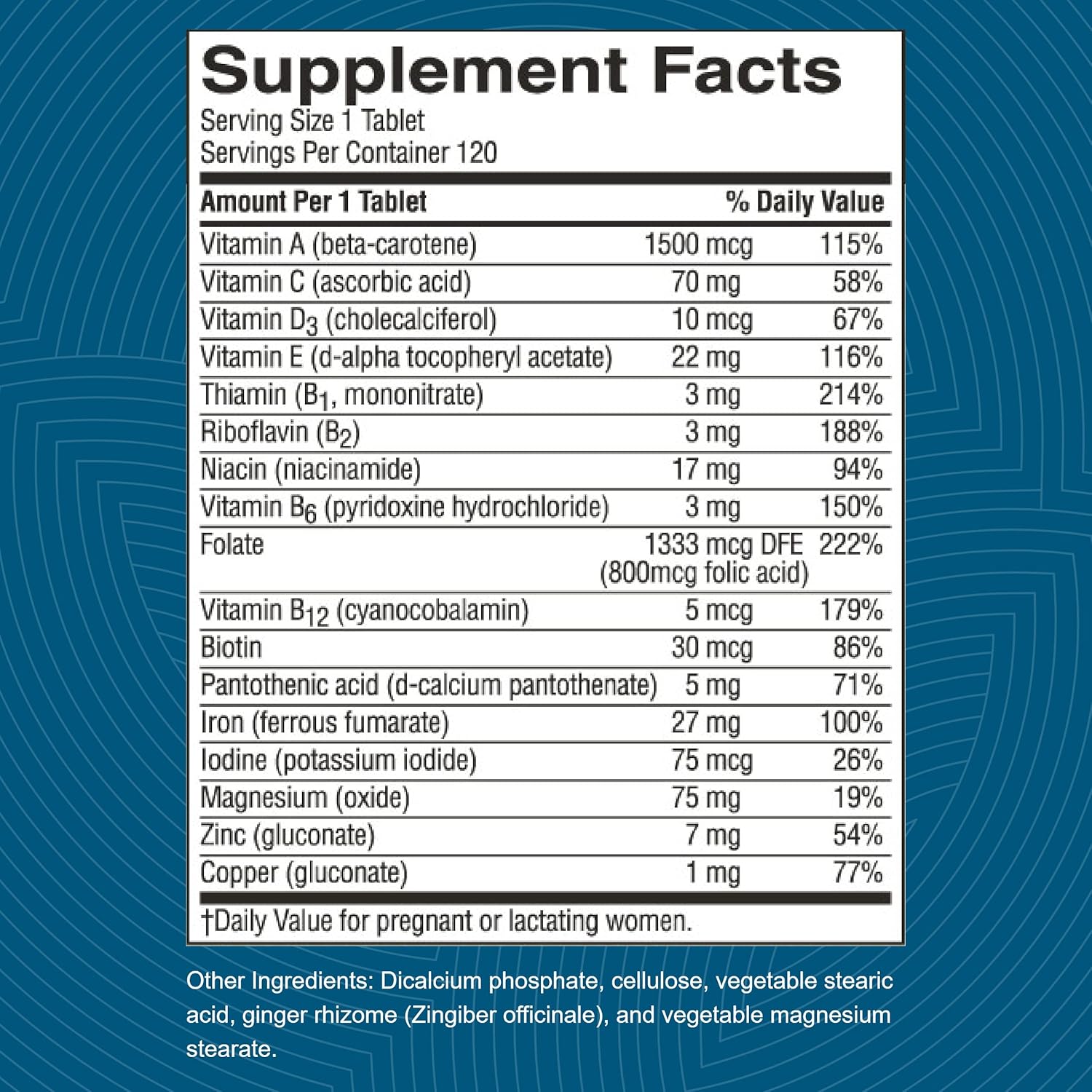 FOLIC ACID – Provides 800 mcg folic acid believed to help prevent neural tube defects.