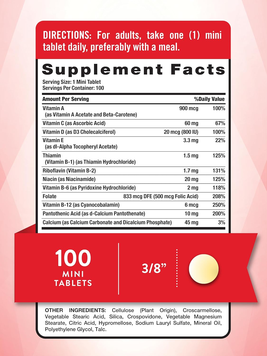 MINI TABLETS: One mini tablet per day delivers a high potency vitamin formula