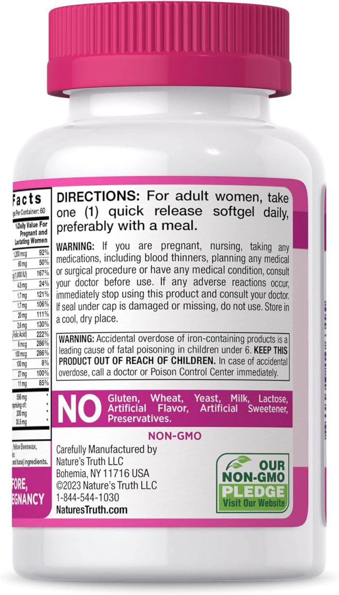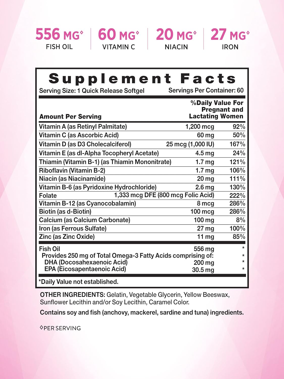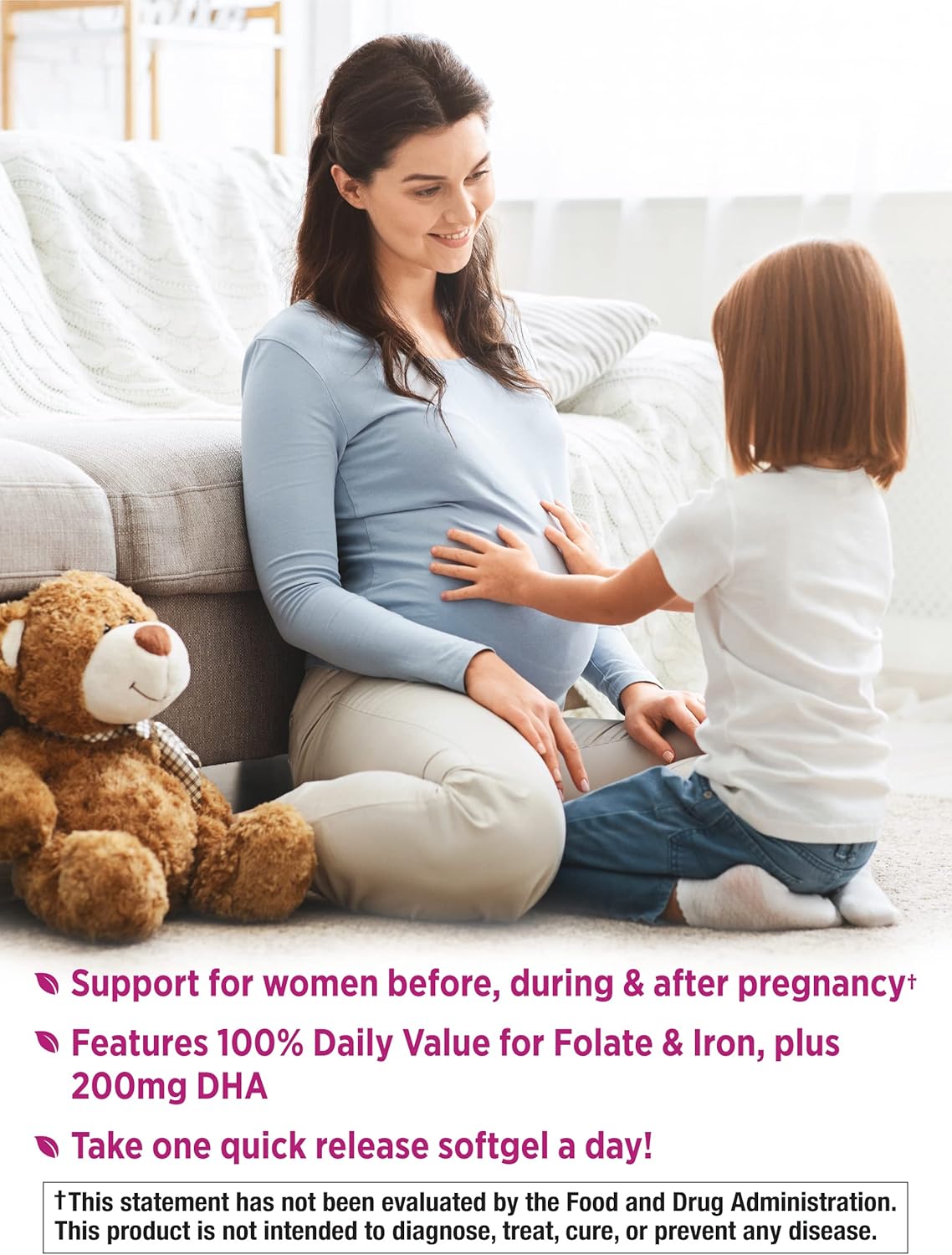 ONE PER DAY: One softgel per day delivers nutrients for mother and baby