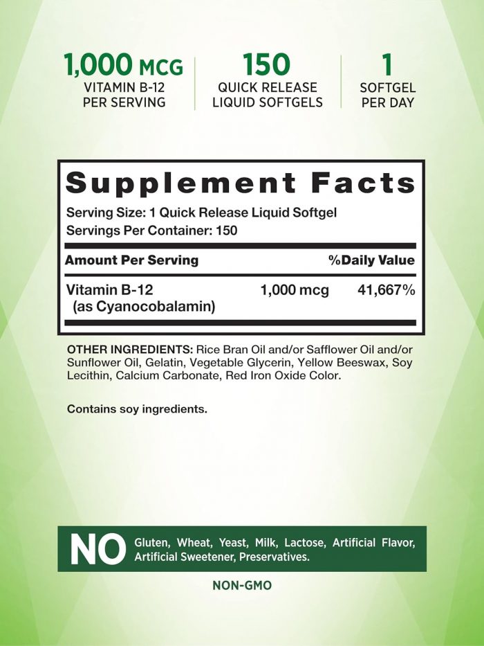 B12 SOFTGELS: 1000 mcg of Vitamin B-12 per softgel