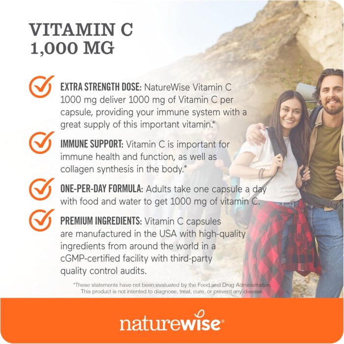EXTRA STRENGTH DOSE: NatureWise Vitamin C 1000mg deliver 1000 mg of Vitamin C per capsule, providing your immune system with a great supply of this important vitamin.