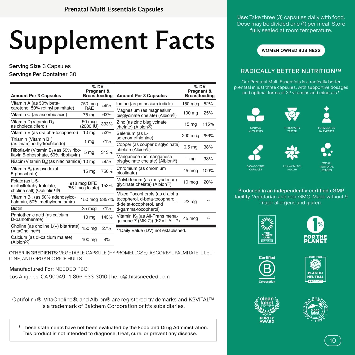 STREAMLINED ESSENTIALS: Our most complete prenatal for women pared down to the essentials—23 vitamins and minerals in highly supportive dosages, delivering optimal nourishment in just 3 capsules daily.