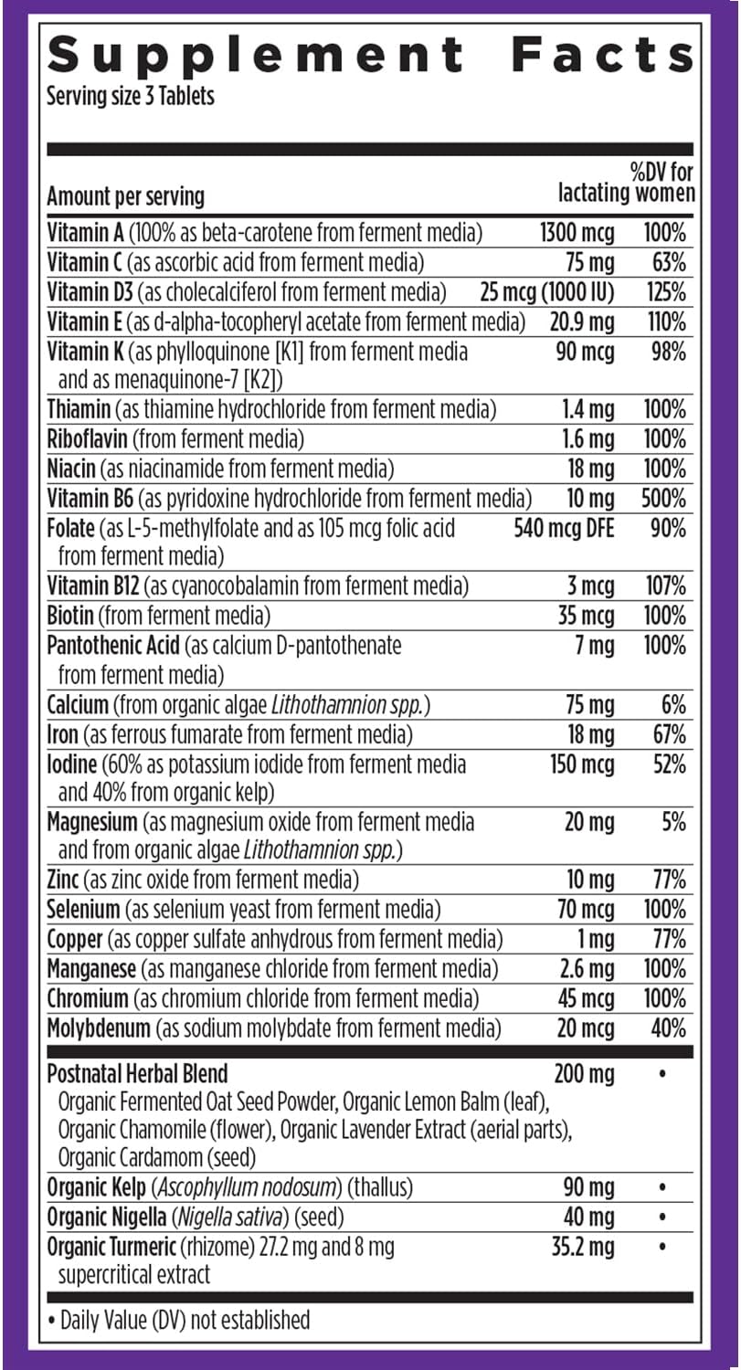 3-IN-1 COMPLETE FORMULA: Multivitamin, Multimineral & Multiherbal. For DHA while nursing, add New Chapter Wholemega for Moms Fish Oil or Vegan Omega-3 Complex