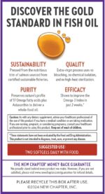 New Chapter brings you the gold standard in fish oil. Wholemega Fish Oil Supplements have been clinically shown to improve the Omega-3 Index in just 2 weeks.* Each 2000 mg dose (2 softgels) of whole-food salmon oil is fresh-pressed to deliver 17 Omega fatty acids (including vital Omega-3s DHA & EPA) for better absorption, plus naturally occurring Vitamin D3. Uses only 100% wild Alaskan salmon oil and helps avoid food waste by using upcycled salmon trim. No krill oil, no anchovies or sardines, no cod liver oil, no exploited fisheries, no farmed fish. *These statements have not been evaluated by the Food and Drug Administration. This product is not intended to diagnose, treat, cure, or prevent any disease.