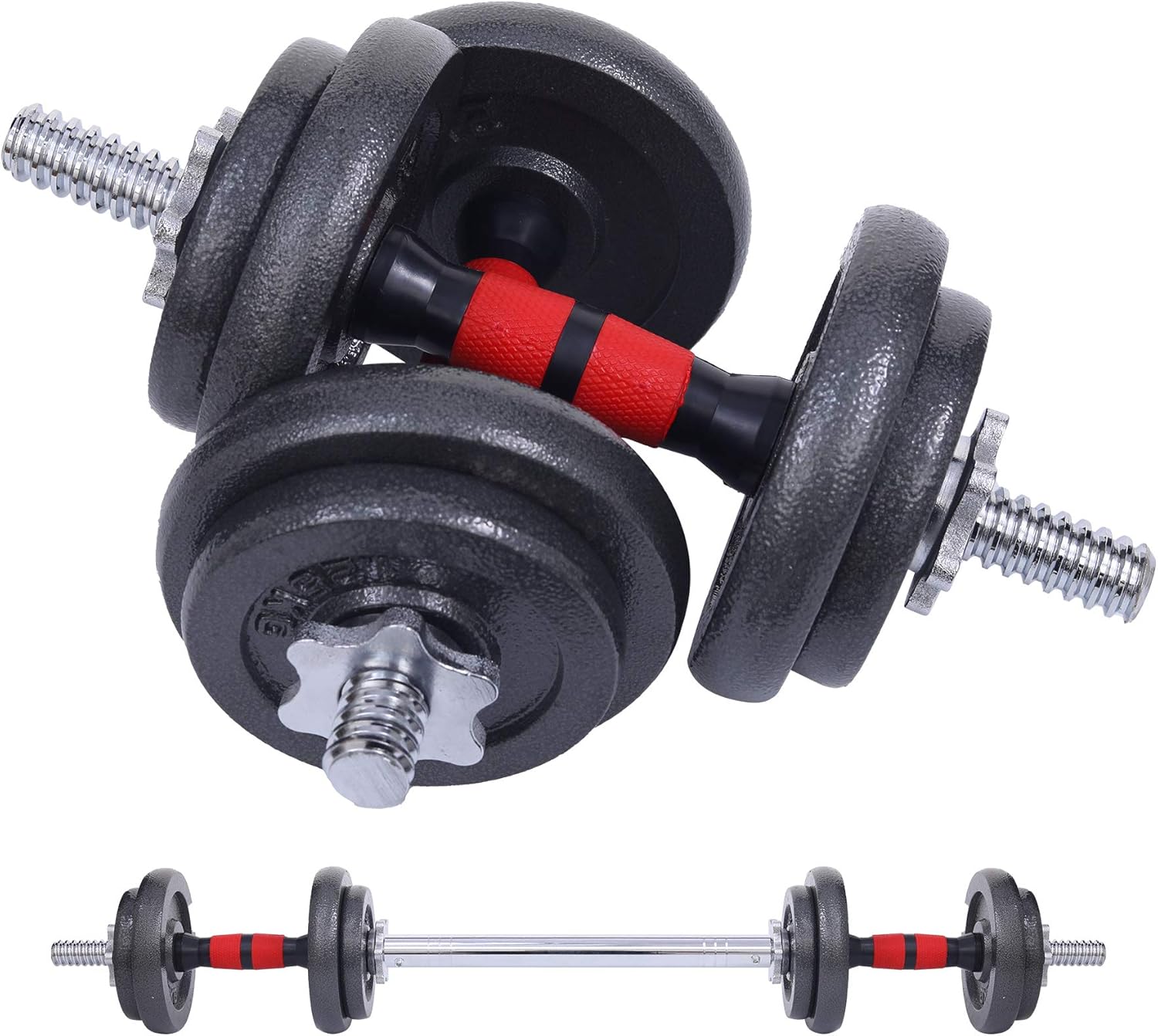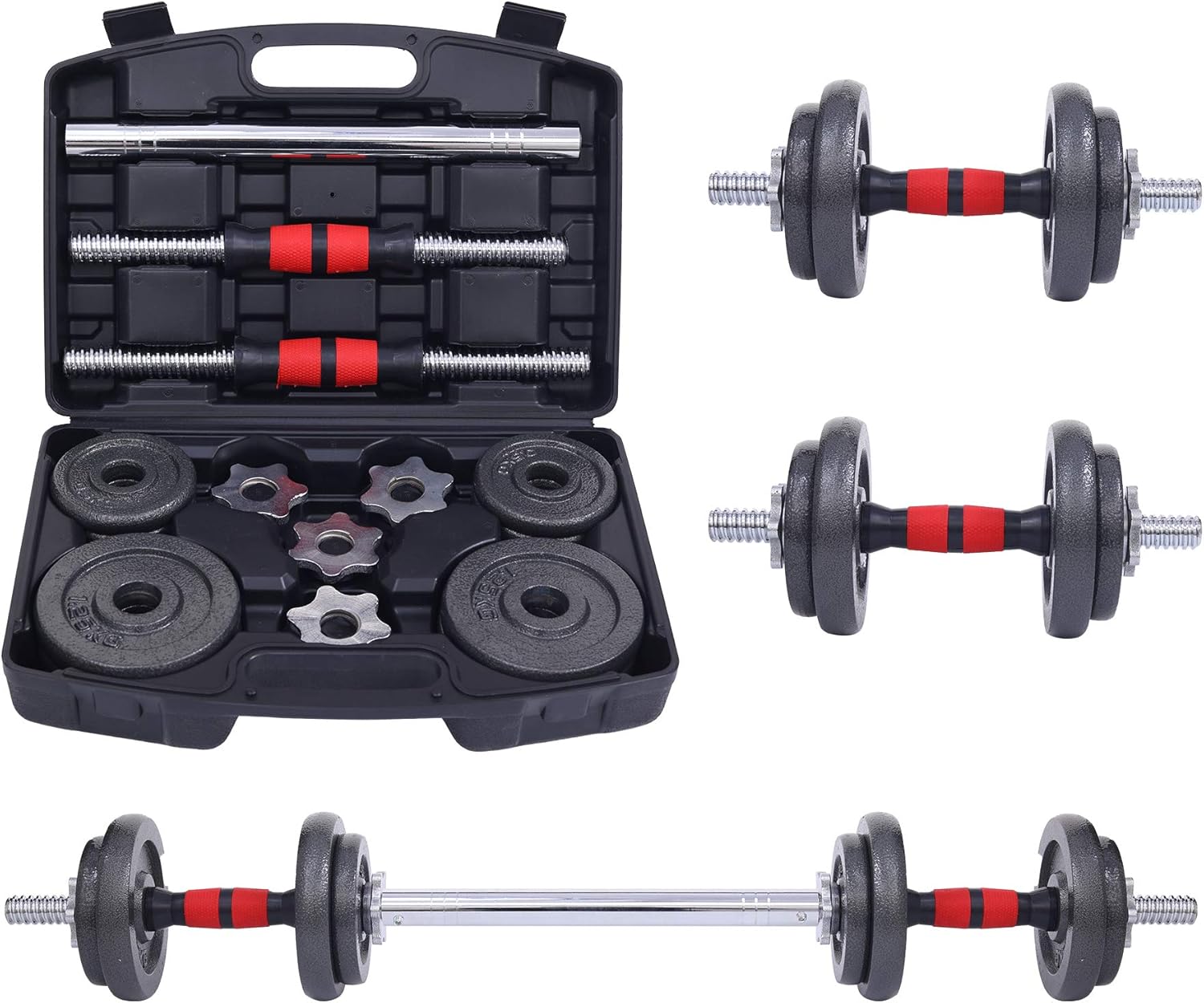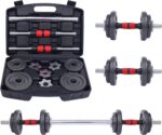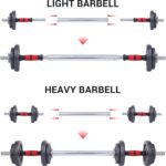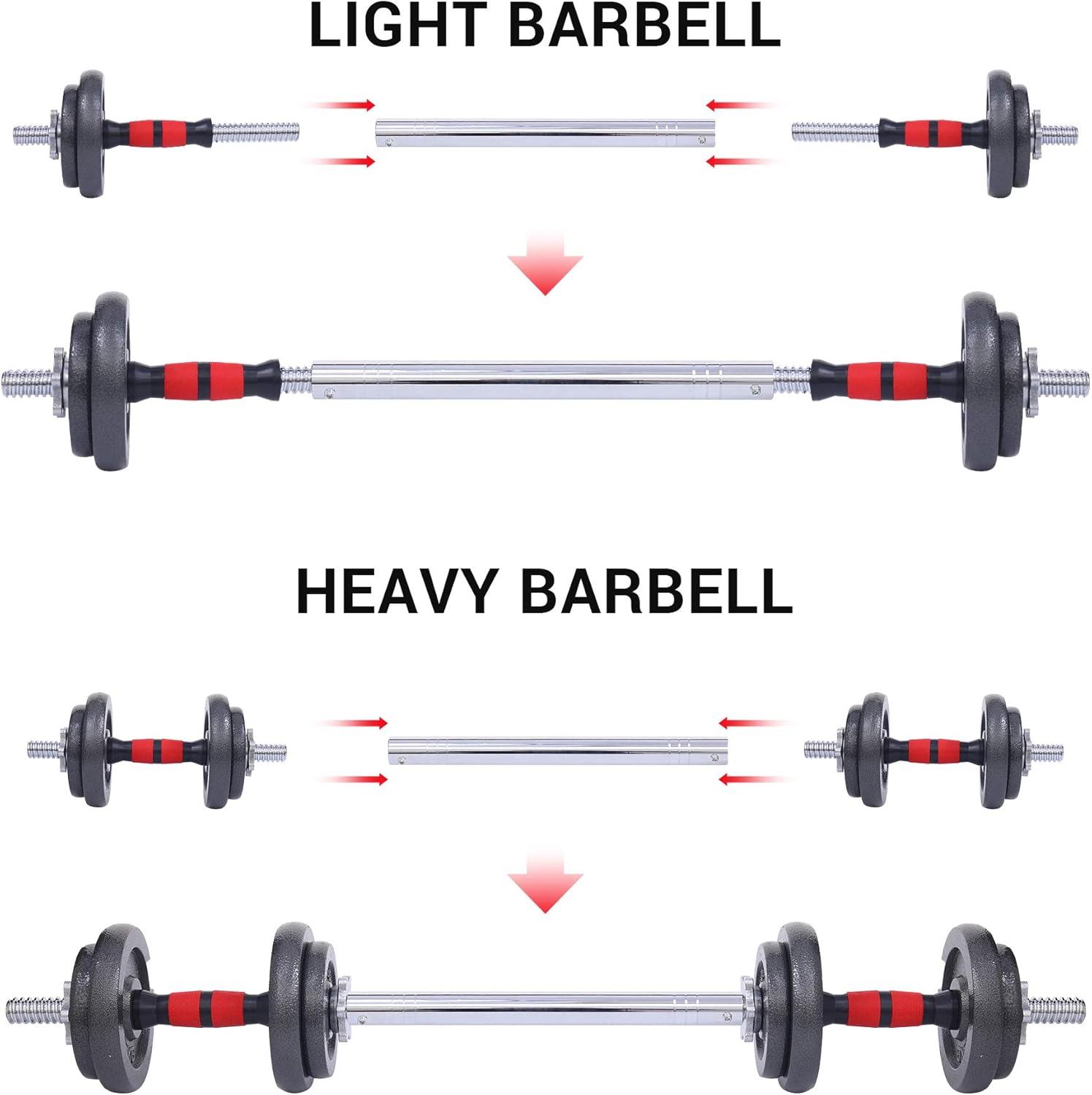 COMPREHENSIVE EXERCISE SET- Our all-in-one dumbbell-barbell set allows you to have a versatile workout. The dumbbells can be used to sculpt your arms, while the barbell setup allows you to practice dead-lifts or squats. This product is perfect for improving overall health or encouraging weight loss. It also helps strengthen the upper body, core muscles, and lower body. The adjustable design makes it easy to stay fit at home.