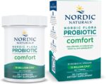 Nordic Flora Probiotic Comfort is a blend of thirteen probiotic strains with 15 billion cultures and prebiotics, to promote gut biodiversity and optimal digestion.* This formula also helps alleviate occasional gas, bloating, and constipation.*