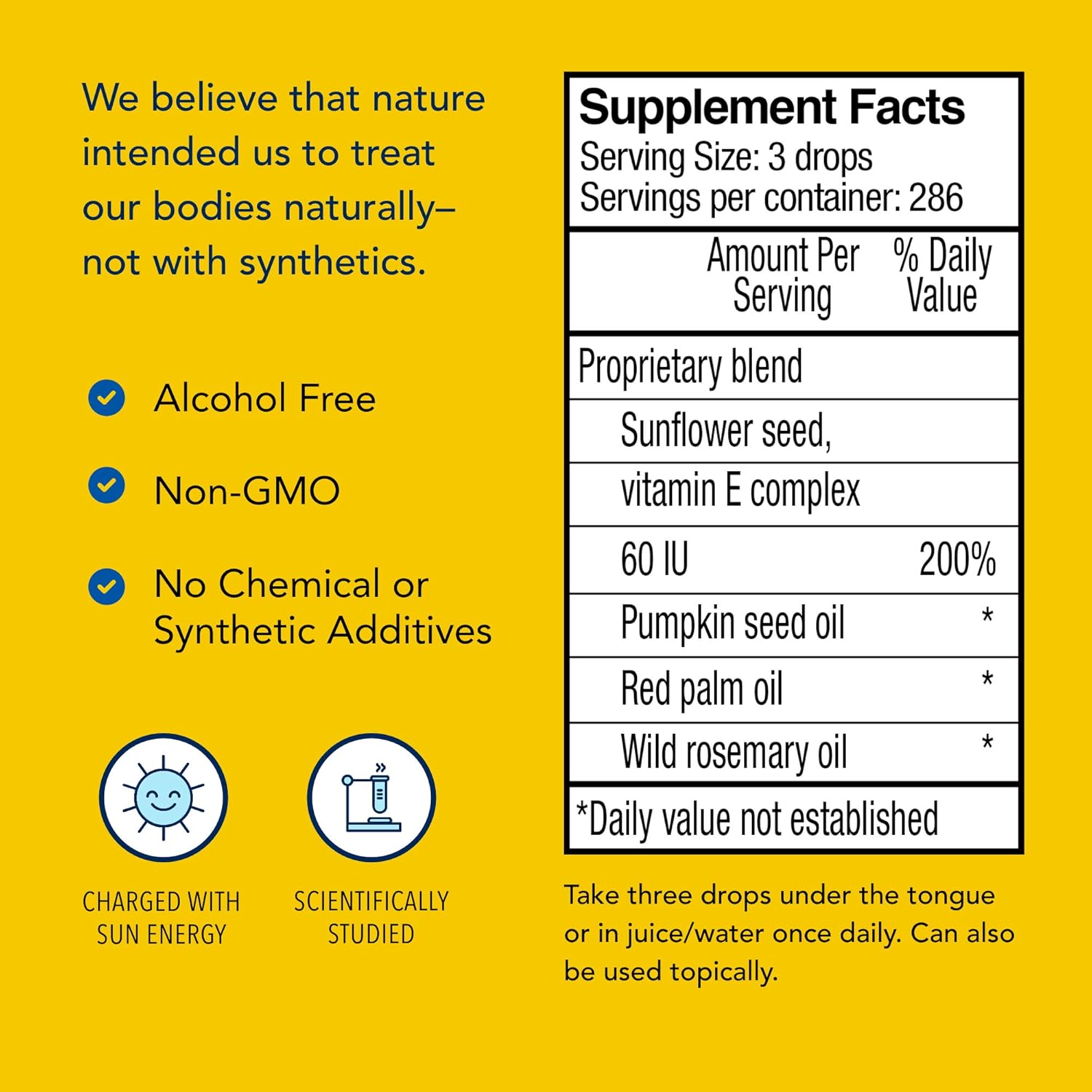 Full Ingredient List; Sunflower seed, Vitamin E complex, pumpkin seed oil, red palm oil, wild rosemary oil; Free of all chemicals, pesticides & additives; Non-GMO