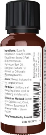 Customers find this essential oil blend effective at sanitizing the air and boosting the immune system, while also appreciating its pleasant scent and quality. They consider it good value for money and like its blend, with one customer noting it doesn’t contain cheap carrier oil. The cinnamon content receives mixed reactions, with some finding it not overwhelming while others consider it too heavy. Some customers report bottle leakage issues.