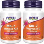 Now Foods Vitamin K-2 (MK7) Veg Capsules, 100 mcg, 60 Count, Pack of 2