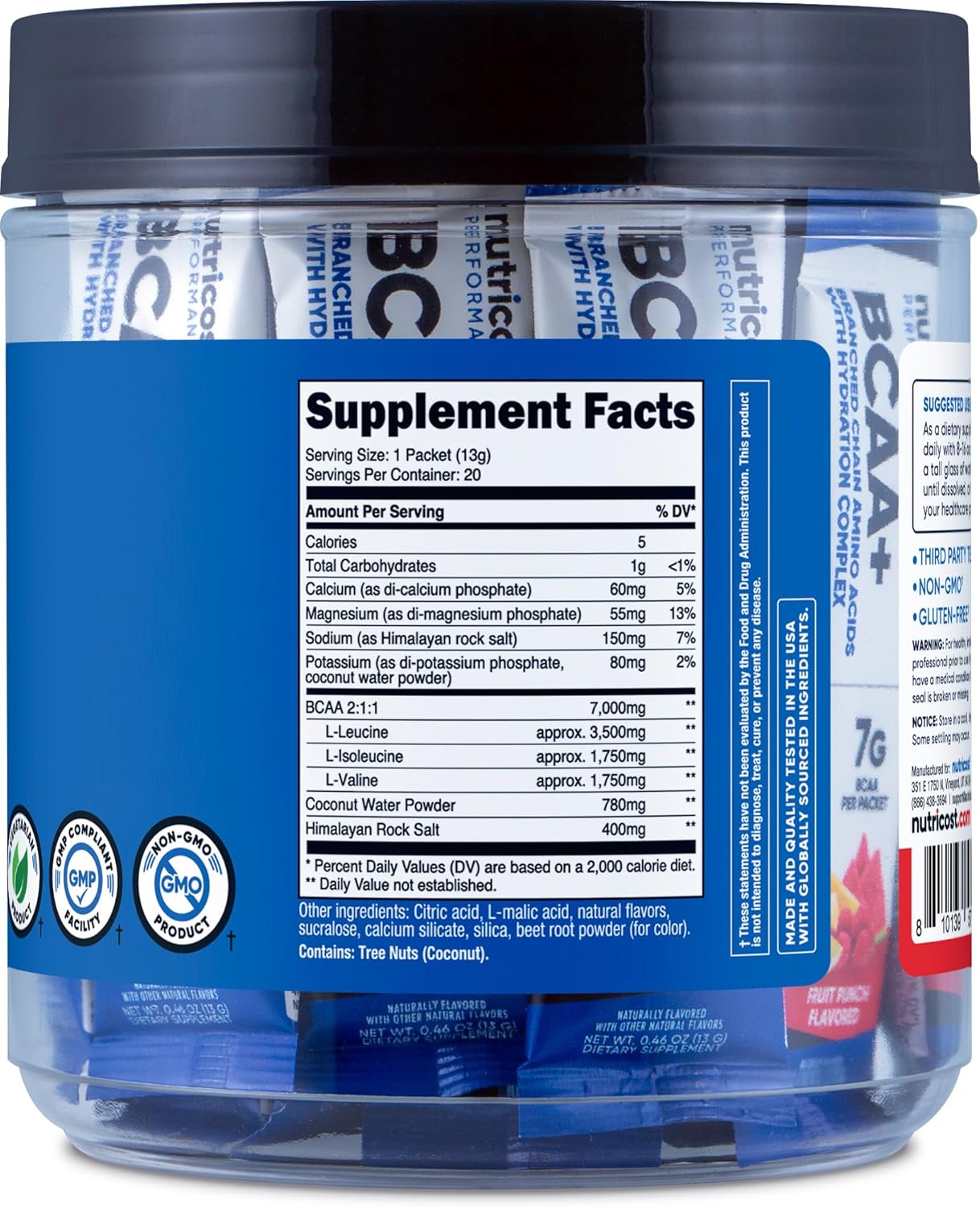 Nutricost BCAA+ Hydration Fruit Punch Flavor (20 S…