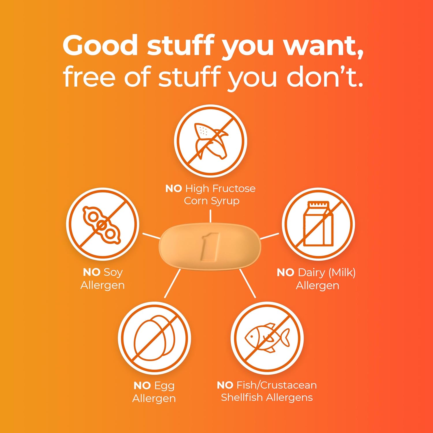 One A Day Women’s 50plus Healthy Advantage Multivitamins are free of gluten, wheat, soy allergens, dairy, and artificial sweeteners