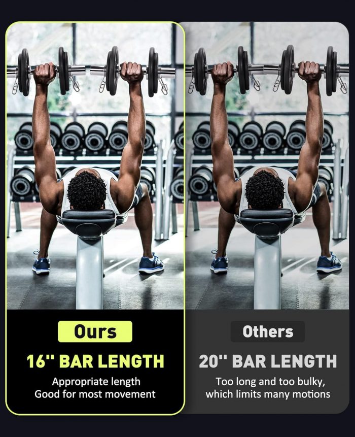 Include 2 spring collars: Each spring collar is precisely produced and will secure to the bar tightly. You can curl and press without worring about the plates slip out