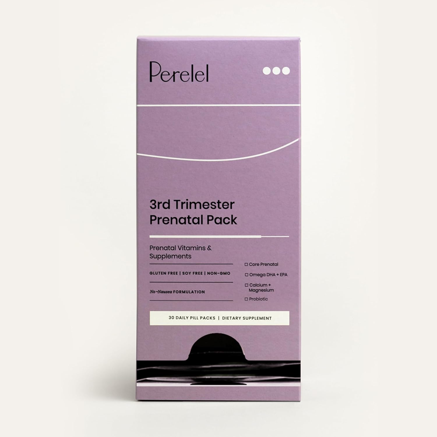 Perelel’s 3rd Trimester Prenatal Pack is designed in collaboration with a team of OB/GYNs to align with the evolving nutritional needs of pregnancy in the final stretch (Weeks 28–40+). Each daily sachet includes Core Prenatal Vitamins, Omega DHA + EPA, Calcium + Magnesium, and a Probiotic capsule. The Omega DHA + EPA softgel provides a source of essential fatty acids that are important nutrients throughout pregnancy. Calcium and magnesium are included in the bioavailable forms, thoughtfully selected for ease of absorption and to complement your daily intake. The included Probiotic capsule adds a consistent source of live microorganisms as part of a balanced approach to wellness during this stage. Each Core Prenatal capsule contains key nutrients, including methylated folate, to support your daily supplement needs. With a single sachet per day, the 3rd Trimester Prenatal Pack offers a convenient way to maintain your routine as you approach delivery. It’s an easy, consistent addition to a health-conscious lifestyle. Take your sachet daily with food and a full glass of water. Pair with Perelel’s Cellular Hydration Powder and Daily Sleep Support to create a comprehensive daily routine. Each Perelel product is thoughtfully formulated to complement different stages of the motherhood journey, allowing you to build a regimen that aligns with your changing needs. With clean ingredients and daily convenience in mind, the 3rd Trimester Prenatal Pack supports your wellness routine as you prepare for what’s ahead.