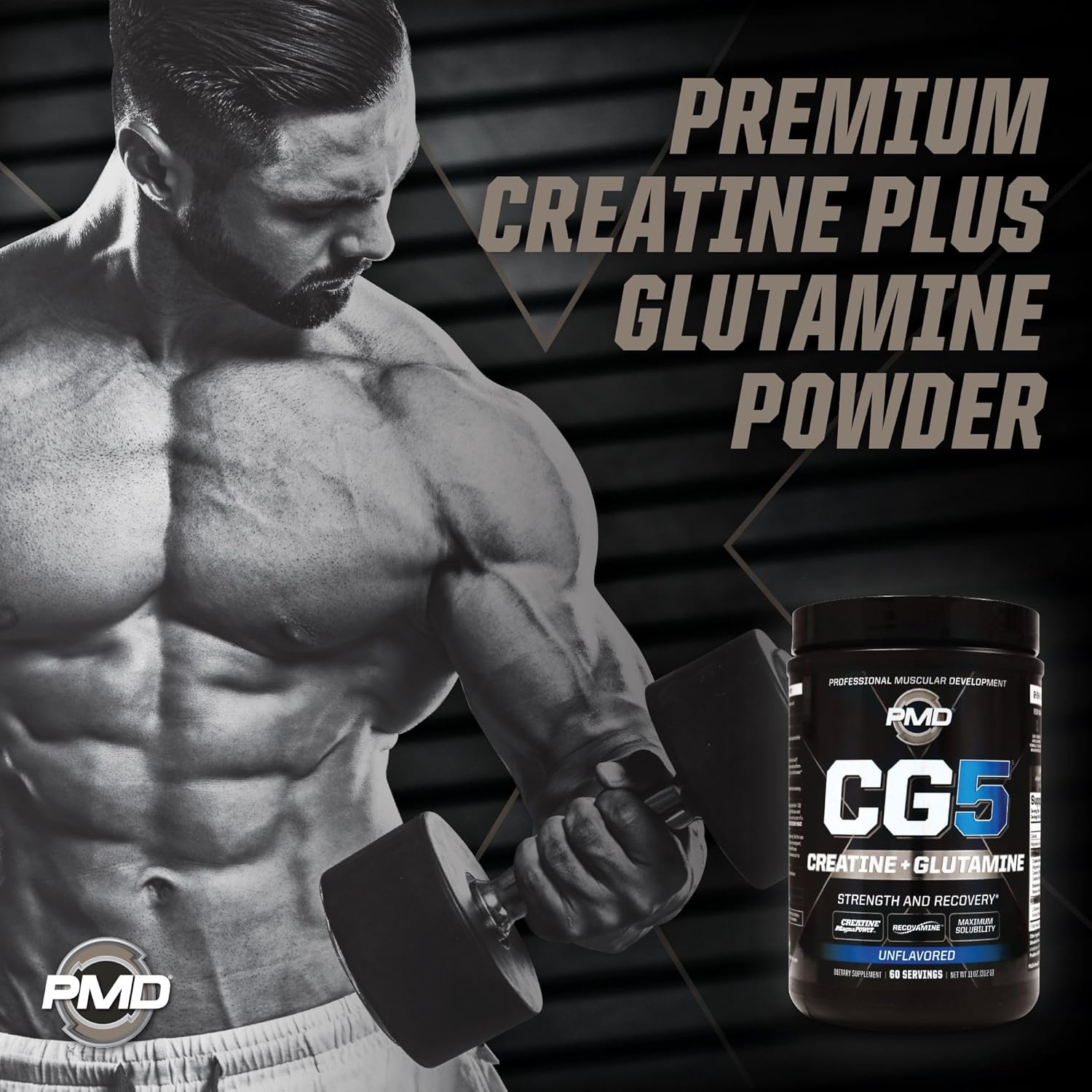PMD Sports CG5 Premium Creatine & L Glutamine Powder, Power Recovery, Build Lean Muscle, Increase Workout Performance, Maximum Strength Pre Workout & Post Workout, Unflavored, 60 Servings