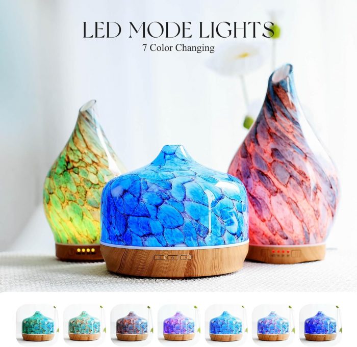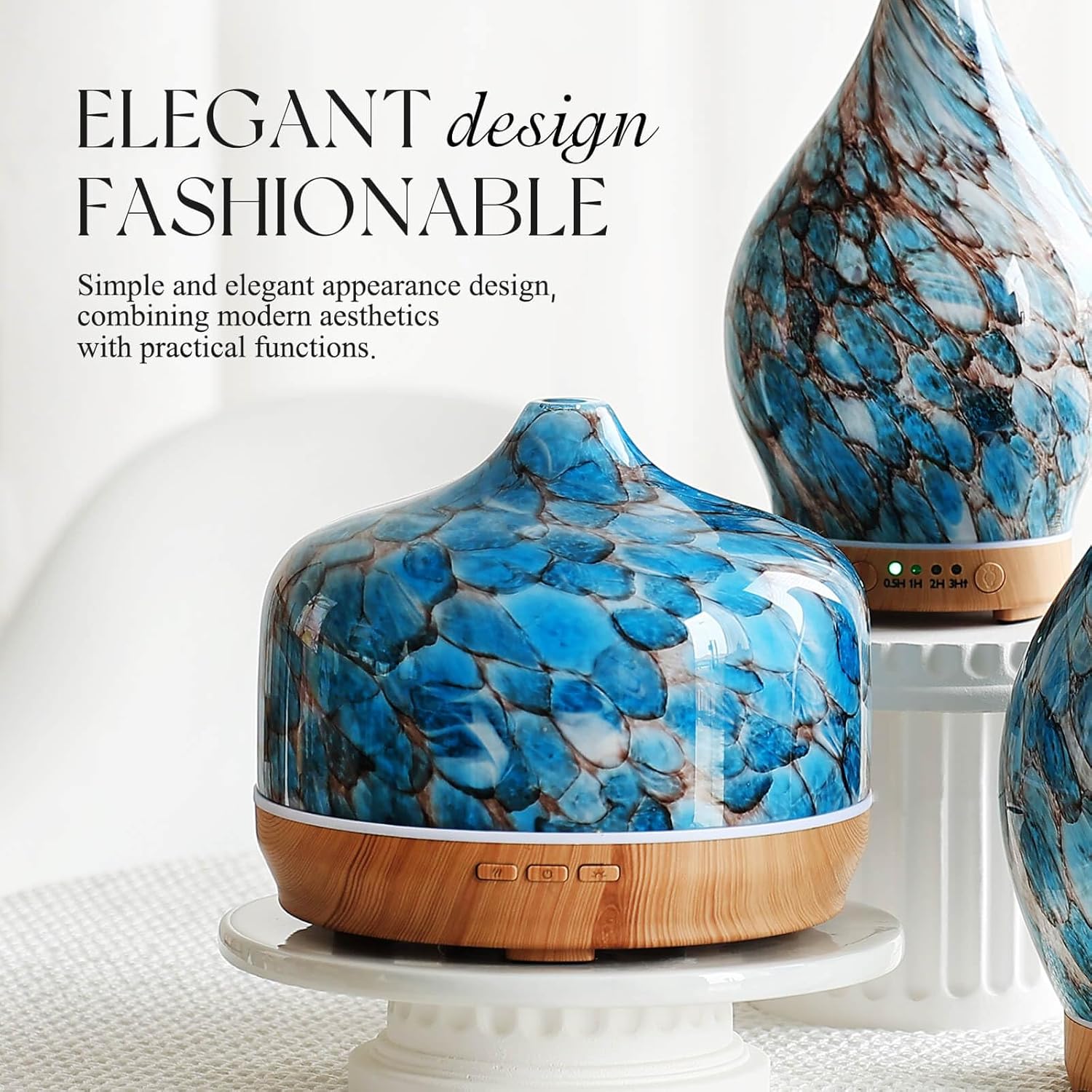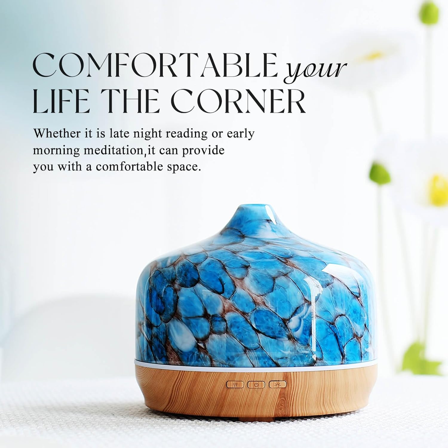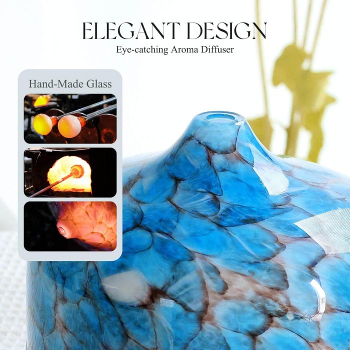 UNIQUE ART DECORATIVE DESIGN – Our 500ml glass essential oil diffuser has an elegant starry pattern glass cover and wood grain decorative base.It is very suitable for your bedroom, living room, children’s room, study room, office and yoga room.